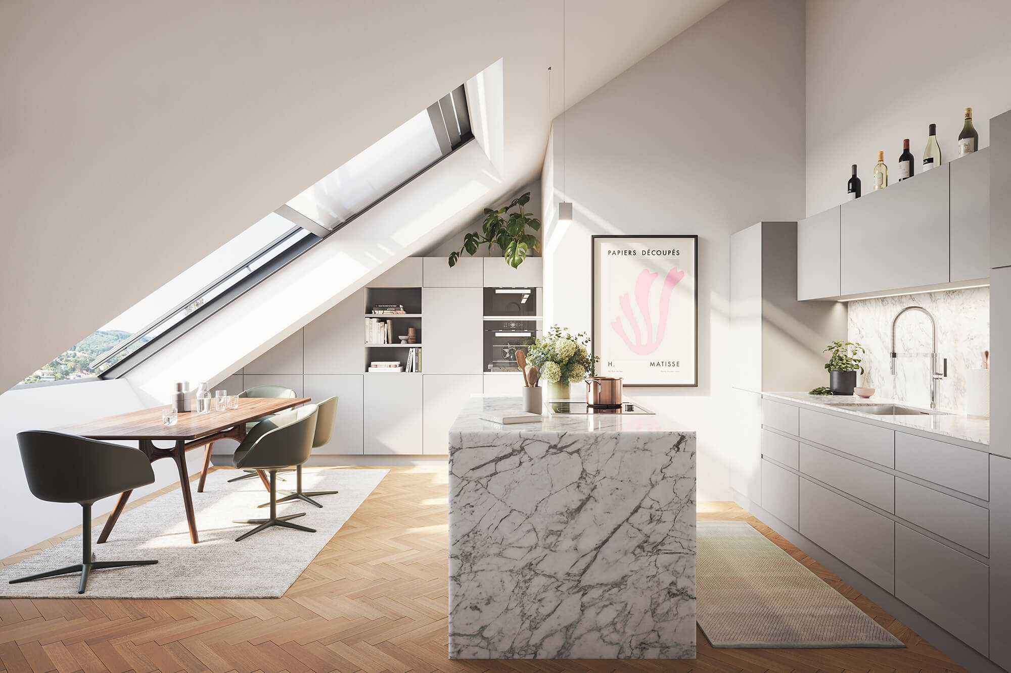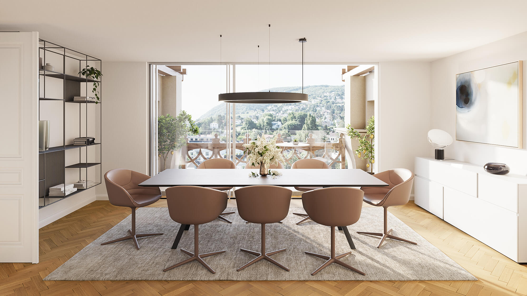 Auf der Suche nach etwas ganz Besonderem wird man im modernen Penthouse des historischen Dachstuhls fündig. Mit seinen großzügigen Räumlichkeiten und einem atemberaubenden Fernblick bietet es ein luxuriöses Wohnambiente der Extraklasse.